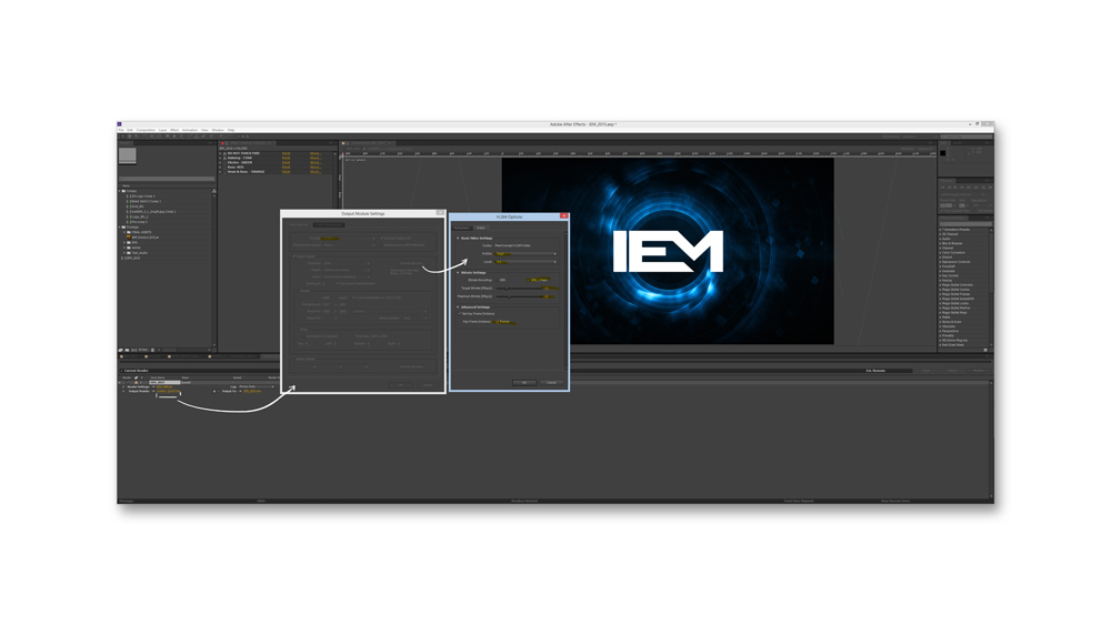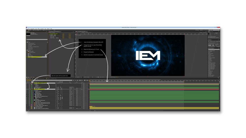 Es wurden After-Effects Templates erstellt, um die Visualisierung automatisch auf den Beat der Musik anzupassen.